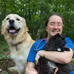 Dr. Brianna Bodley-Gomes graduated from UMass Amherst with a bachelor’s degree in Animal Science in 2012. She received her doctorate from the Cummings School of Veterinary Medicine at Tufts in 2016. She started practice as a mixed, large and small animal veterinarian in the White Mountains of New Hampshire, before transitioning to small animal only back in Massachusetts. She became certified in veterinary acupuncture through the Chi institute in 2022. Her special interests are integrative medicine, surgery, and internal medicine. While not practicing veterinary medicine, she loves hiking with her two dogs, gardening, and acrylic painting.